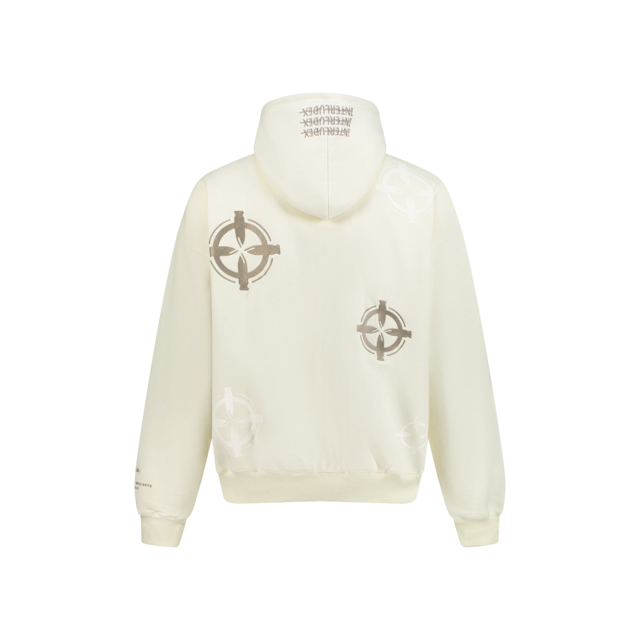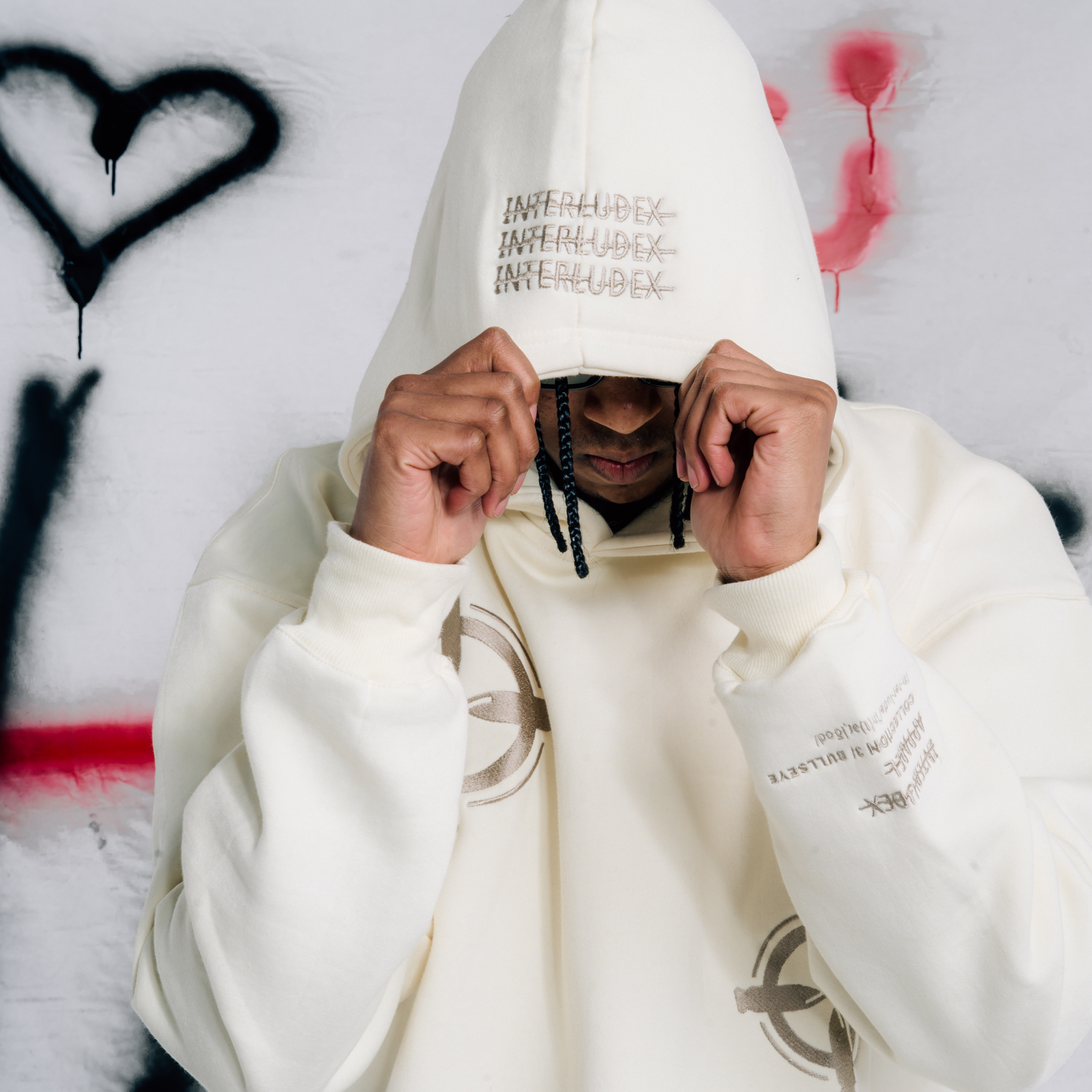 The INTERLUDEX Bullseye Pullover Hoodie is crafted from 100% heavyweight cotton, delivering a relaxed, oversized fit with all-day comfort. Featuring a bold monochrome contrast logo print and sleeve embroidery, it brings a modern edge to any streetwear lineup.