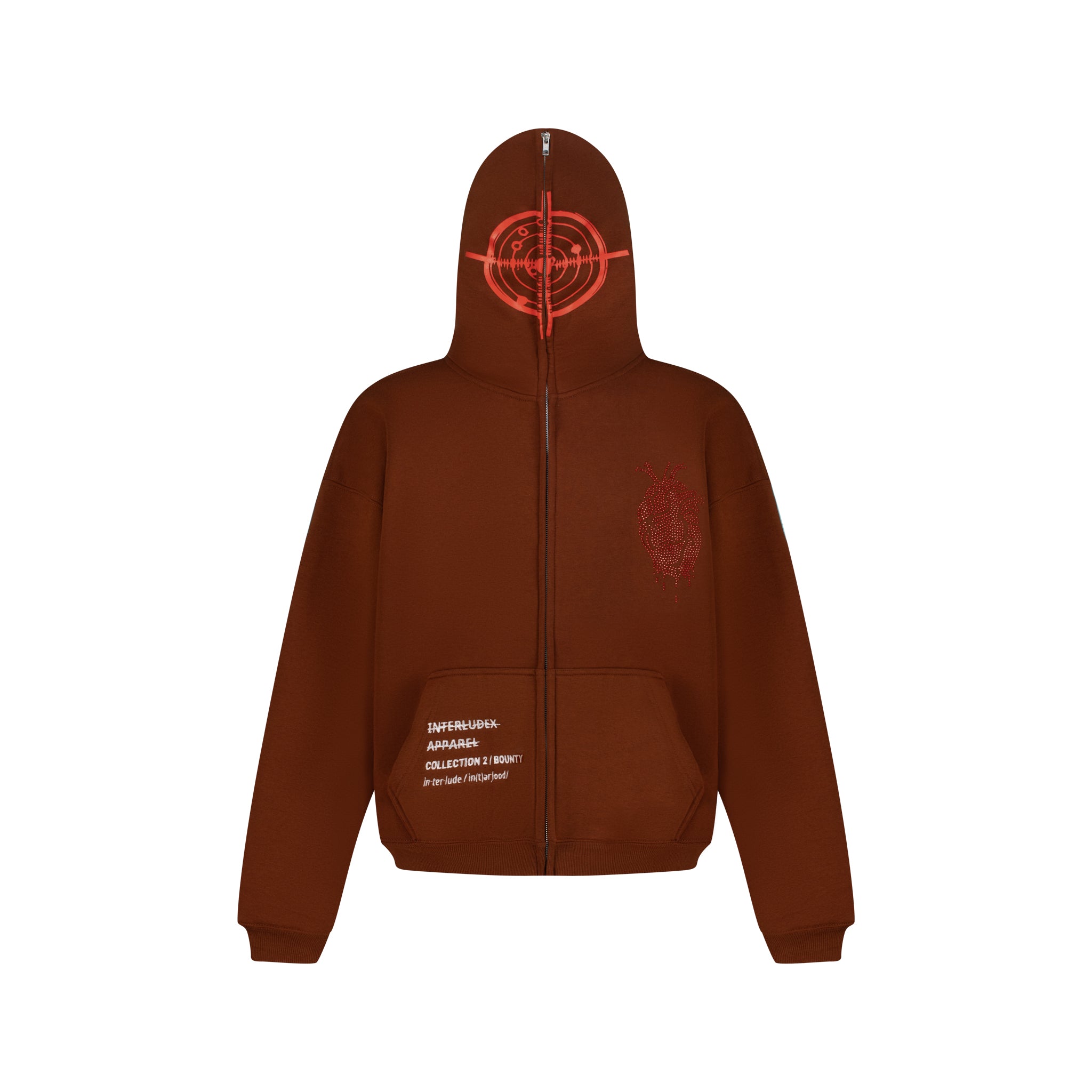 The BOUNTY Hoodie is crafted from premium 100% cotton, combining comfort with bold streetwear detailing. Featuring a full zip-up design, embroidered front logo, and a striking red rhinestone bleeding heart, it delivers standout style from every angle. Finished with an INTERLUDEX back print, this hoodie is designed to make an impact whether layered or worn as the centerpiece of your fit.